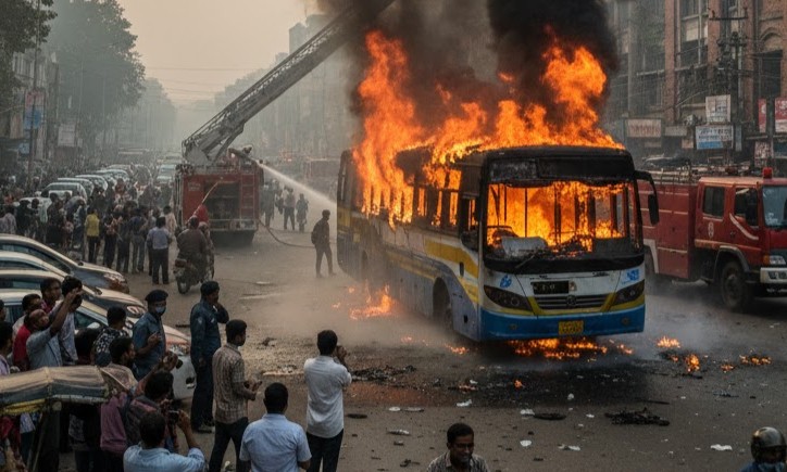বাসের চালক ও সহকারীর বরাত দিয়ে রুহুল আমিন বলেন, বাস থেকে সবশেষ তিনজন যাত্রী নামার পর আগুন দেখতে পান তারা। ধারণা করা হচ্ছে, ওই যাত্রীরাই আগুন দিয়ে বাস থেকে নেমে গেছে।