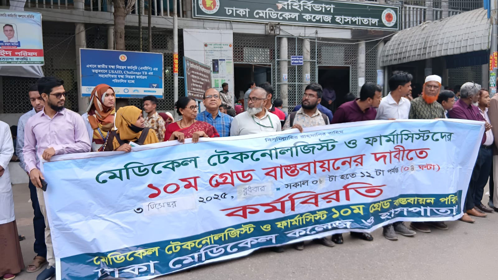 এর আগে, ৩০ নভেম্বর দুই ঘণ্টা কর্মবিরতি করেছিলেন মেডিকেল টেকনোলজিস্ট ও ফার্মাসিস্টরা।