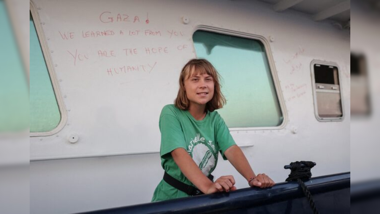 দ্য গার্ডিয়ান জানিয়েছে, ২২ বছর বয়সী গ্রেটা থুনবার্গ বিক্ষোভের সময় মাটিতে বসে একটি প্ল্যাকার্ড ধরে ছিলেন। প্ল্যাকার্ডে লেখা ছিল—‘আমি প্যালেস্টাইন অ্যাকশন বন্দীদের সমর্থন করি। আমি গণহত্যার বিরোধিতা করি।’