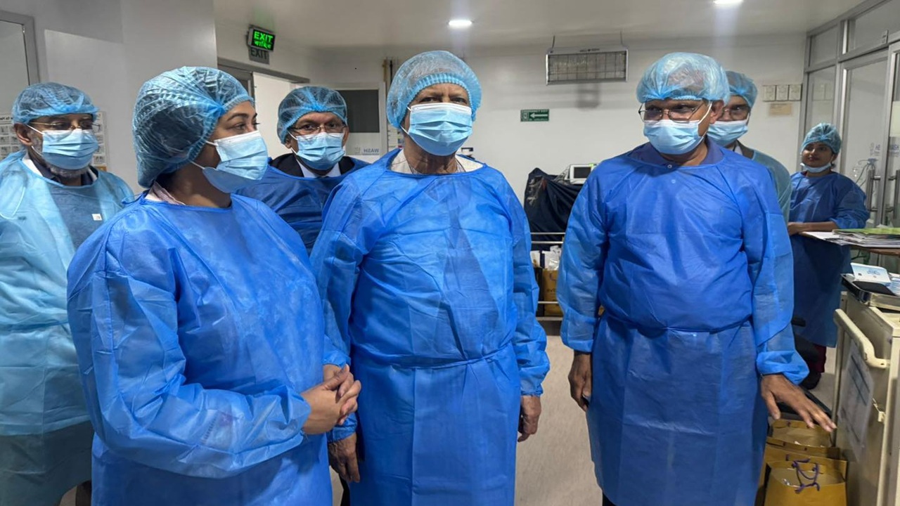 আজ বুধবার সন্ধ্যায় ৭টার দিকে প্রধান উপদেষ্টার গাড়িবহর হাসপাতালে প্রবেশ করে। প্রধান উপদেষ্টা হাসপাতালে প্রায় আধা ঘণ্টা অবস্থান করেন।