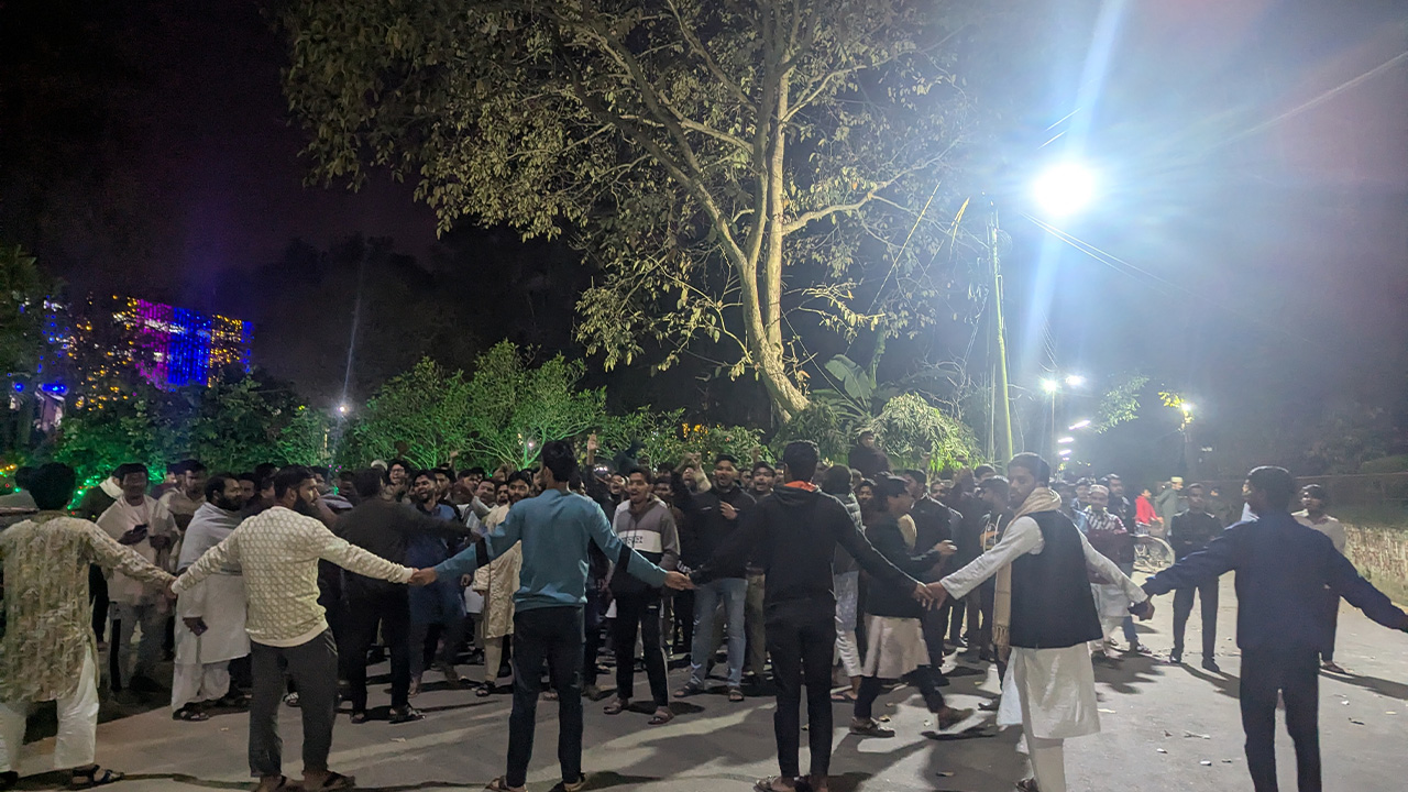 আজ সোমবার প্রশাসনিক ভবনের সামনে বিভিন্ন ছাত্রসংগঠনের নেতাকর্মীরা অবস্থান কর্মসূচি ও স্লোগান দেয়।