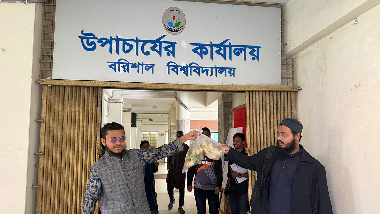 বরিশাল বিশ্ববিদ্যালয়ের বিভিন্ন সংকট এবং কোনো পদক্ষেপ না নেওয়ায় বিশ্ববিদ্যালয়ের উপাচার্য কার্যালয়ে মুলা পাঠিয়েছে ইসলামী ছাত্র আন্দোলন।