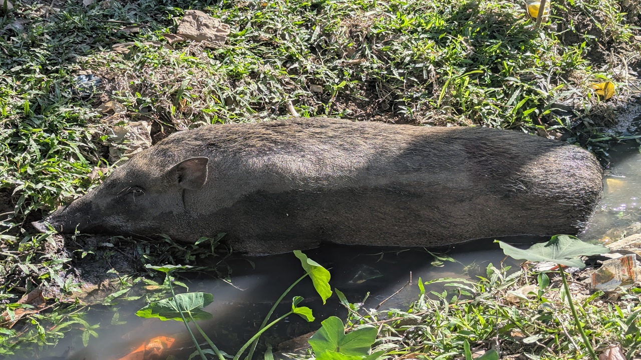 বাঁশের সঙ্গে ধারালো লোহার রড বেঁধে একটি বন্য শূকরের ওপর আঘাত করে হত্যার চেষ্টা চালানো হয়। পরবর্তীতে, শিক্ষার্থীরা আহত শূকরটিকে উদ্ধার করে প্রাথমিক চিকিৎসা দেয়।