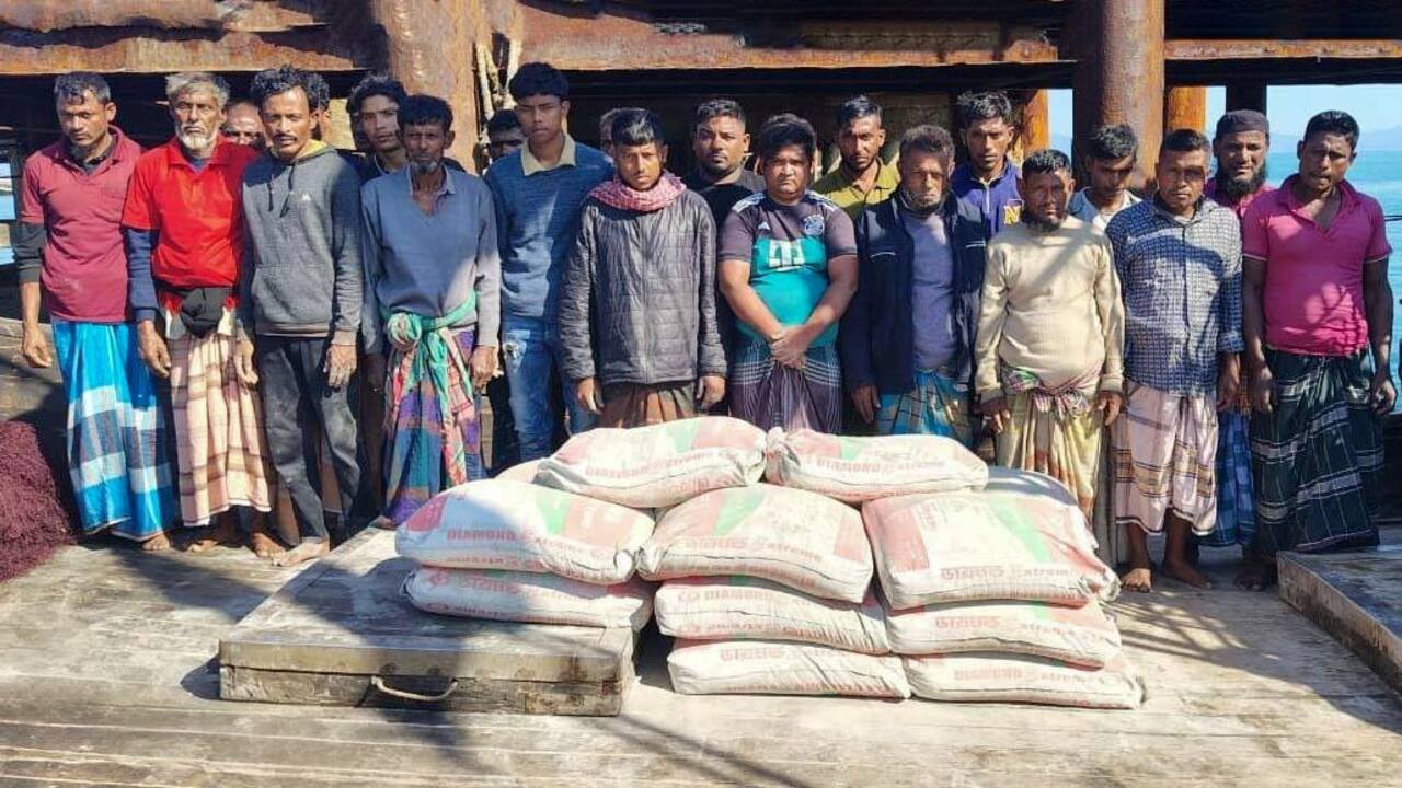 মিয়ানমারে পাচারের উদ্দেশ্যে সমুদ্রপথে অবৈধভাবে ১৫০০ বস্তা সিমেন্টসহ দুটি ইঞ্জিন চালিত বোট এবং ২২ জন চোরাকারবারিকে আটক করেছে বাংলাদেশ নৌবাহিনী।