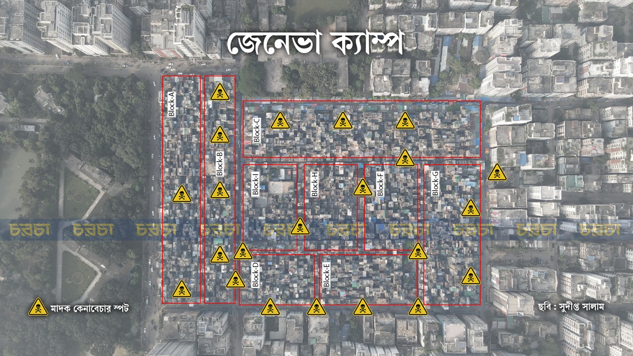 ঢাকার অন্যতম মাদকের আখড়া হিসেবে পরিচিত মোহাম্মদপুরের জেনেভা ক্যাম্প। দিনরাত এখানে চলে ইয়াবা, গাঁজা ও হেরোইন বেচাকেনা। ক্যাম্পের অন্তত ২৫টি স্পটে প্রতিদিন প্রায় দেড় কোটি টাকারও বেশি মাদক বিক্রি হয়। মাদক কারবারকে কেন্দ্র করে গত কয়েক যুগ ধরে ক্যাম্পজুড়ে সংঘর্ষ, আধিপত্যের লড়াই, খুনোখুনি চলছে। বিশেষ করে জুলাই গণঅভ্যুত্থানের পর দেড় বছরে একাধিক সংঘর্ষে অন্তত ১০ জনের প্রাণহানি ঘটেছে।